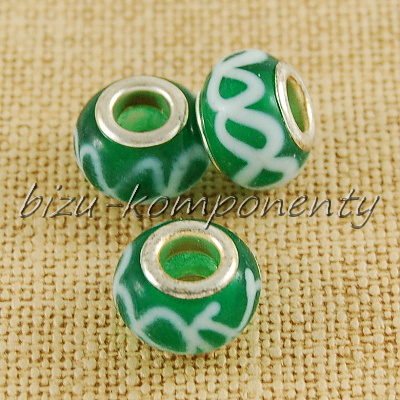 Skleněný zelený korálek s vlnkamiSkladem 45 ks12,00 Kč/ ks
