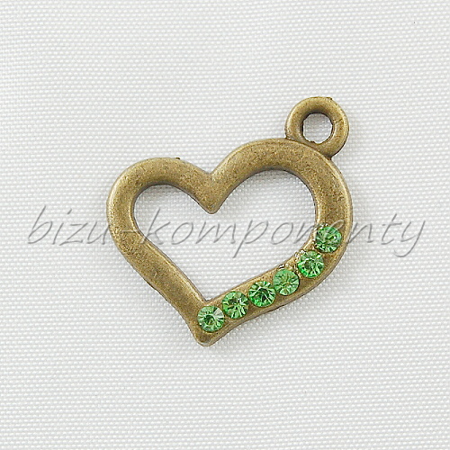 Srdce se dvětle zelenými šatony, bronzová barvaSkladem 5 ks15,00 Kč/ ks