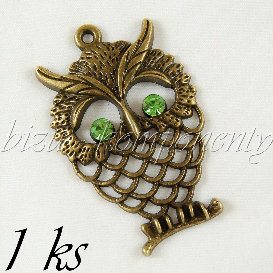 Veliká sova se zelenýma očima, bronzová barvaSkladem 5 ks24,00 Kč/ ks