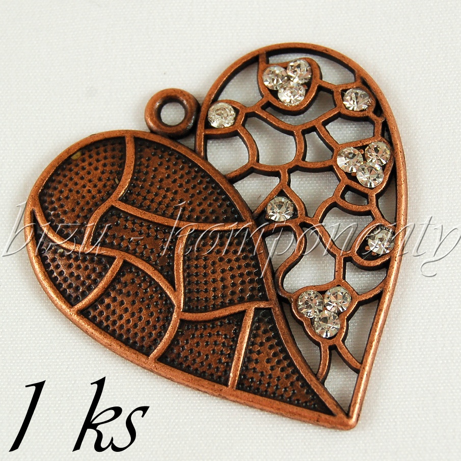 Velké ozdobné srdce s čirými šatony, měděná barvaSkladem 1 ks27,00 Kč/ ks
