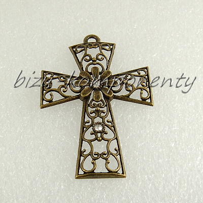 Velký kříž s kopretinou a čirými šatony, bronzová barvaSkladem 9 ks57,00 Kč/ ks