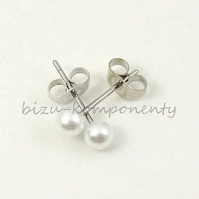 - Náušnice bílá perlička, 4mm, ocel