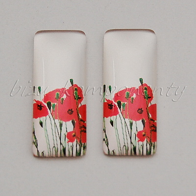 Skleněný kabošon vlčí mák, 10x25 mm, pár
