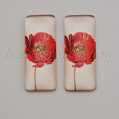 Skleněný kabošon vlčí mák, 10x25 mm, pár